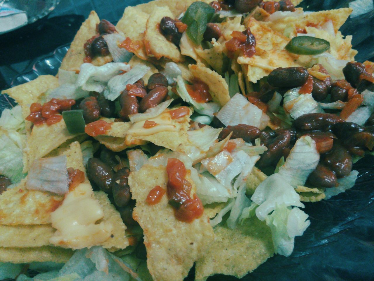 Transfer nachos on serving platter. Toss beans in salsa sauce and add to nachos. Add iceberg, olives and jalapeno. Mix gently and serve warm.