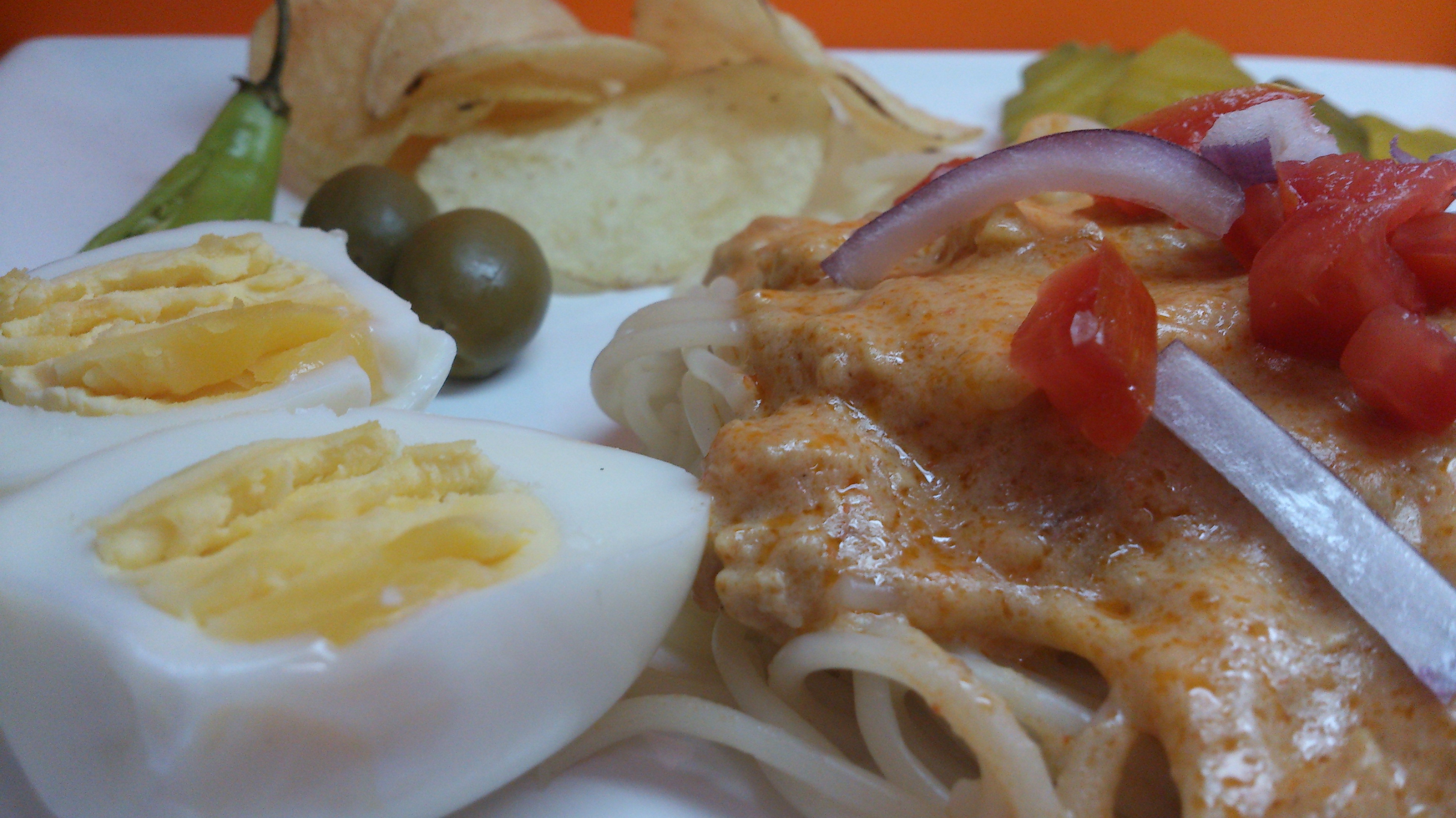 When I was in school, there was a Burmese family in our neighborhood and they used to make this gorgeous dish. I heard about coconut milk being used in cooking for the first time through her. She once verbally told us the recipe but I am not so sure how accurate my version is. Still it is an extremely yummy way/excuse to have pasta. Btw it is very commonly mispronounced as Khaosay.