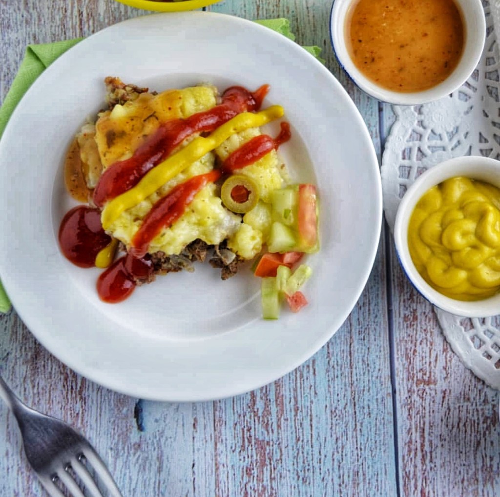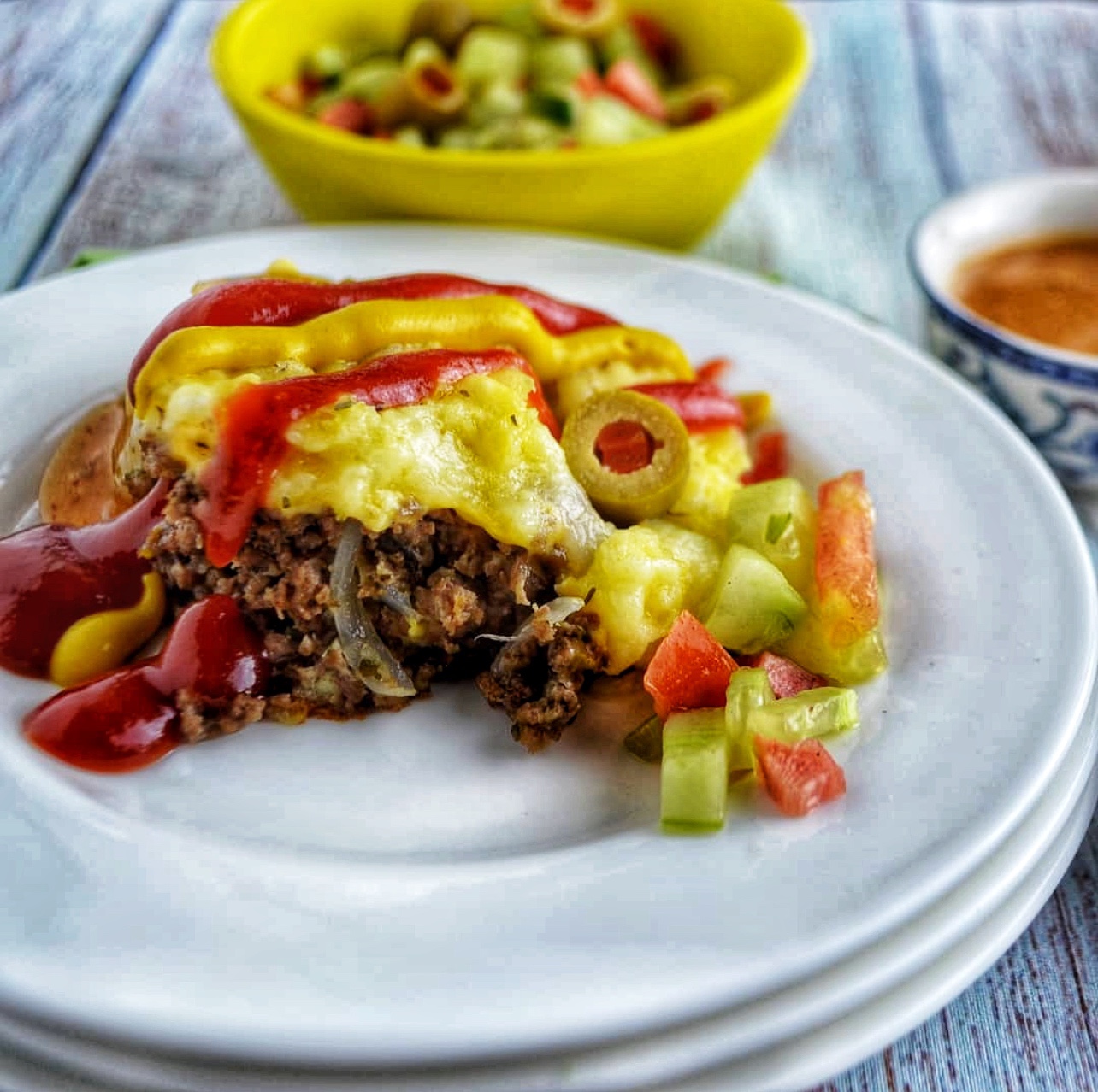 All the elements of a juicy burger, bursting with flavors, in a casserole which saves time and feed a crowd.