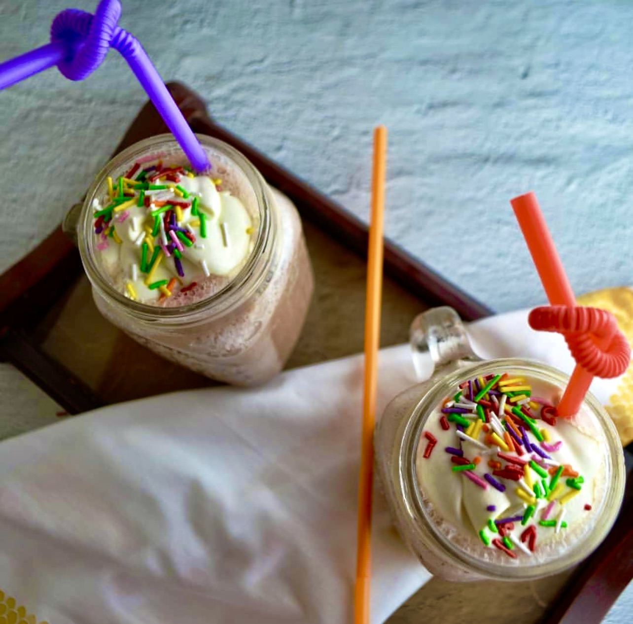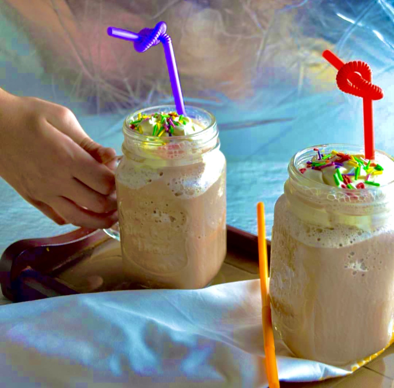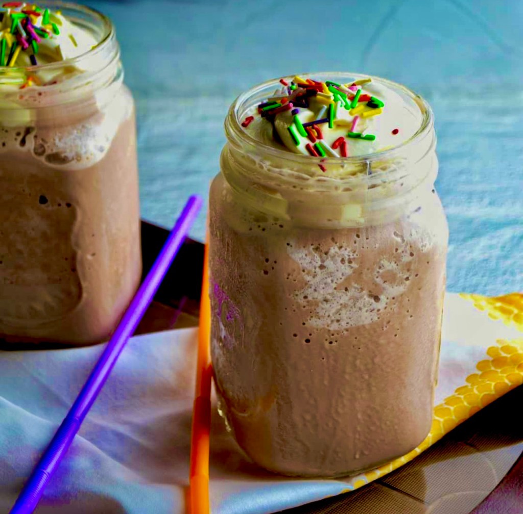 - Immediately pour into glasses, top with whipped cream and sprinkles or any other toppings.